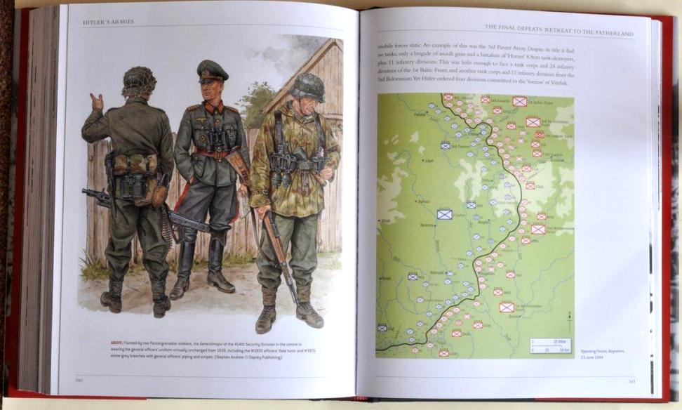 The jacket write up opens with: “The definitive work on the subject, HITLERS ARMIES charts the Nazi war machines history from stunning victories during the Blitzkrieg of 1940 to the hard fought campaigns in the North African deserts, the Soviet Union to its eventual retreat to the Fatherland.”