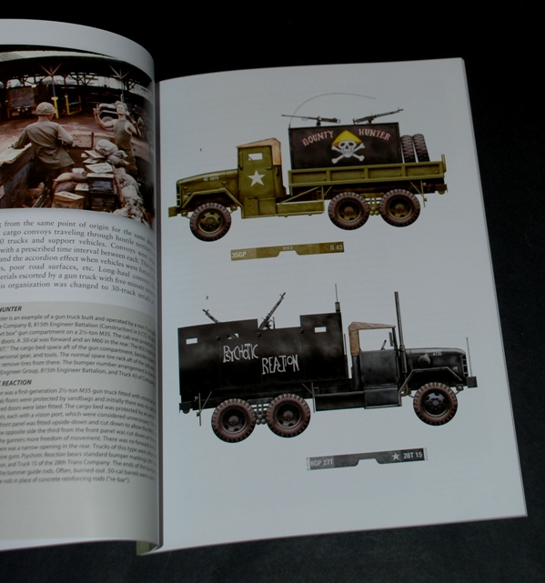 Of interest are the eight pages of colour artwork of the Gun Trucks , two of which are of a single vehicle called “The Eve of Destruction”; these plates give an idea of the development and of course the gaudy paint work applied by the crews.