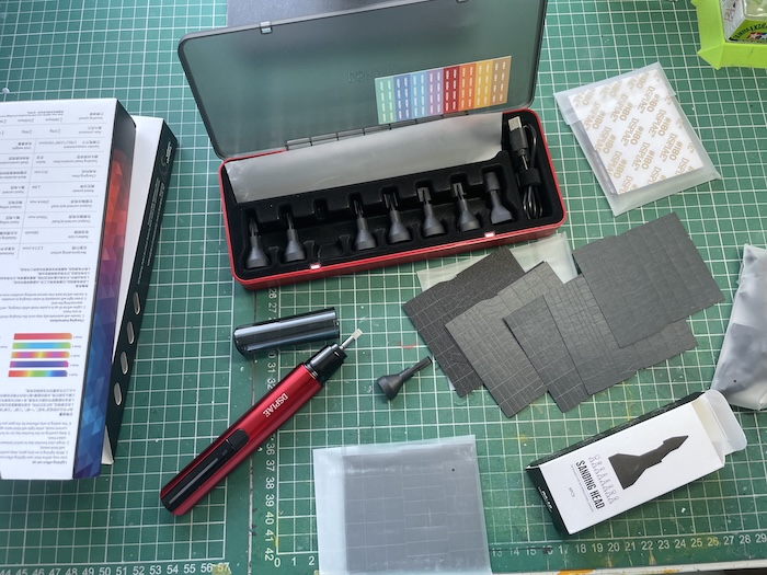 It’s a precision engineered electric sanding tool to enable you to speed up and eliminate joins and uneven edges like the mating surfaces of different parts when assembling plastic model kits. Also for removing excess filler.