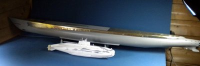 OK so rambling over, the first thing to note is how big this monster is. You can see it against a regular pot of Revell and Tamiya Paint and my latest 1:72nd scale Holland Class Sub. The kit isn’t difficult but will need very careful planning. I am fortunate in having a large purpose built ‘den’ for my modelling but as you can see it takes up all the available space on my build table. So before you go out and buy one of these beauties make sure you have the space and prepare to buy your partner something very nice and probably very expensive to make up for the disruption!!