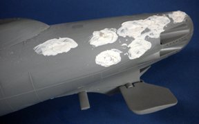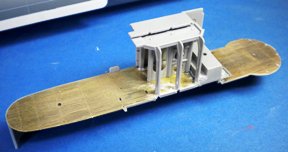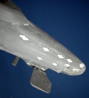 With all this work I added the detail parts except the props and prop shafts and sprayed the hull with Halfords Primer.
