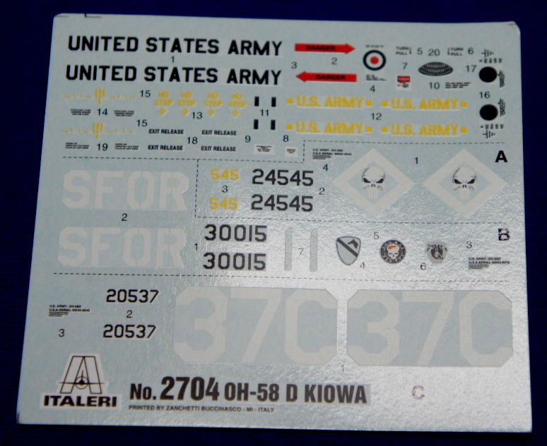 The colour call-out cover several paint manufactures (Italeri and Model Master), but they also stipulate the relevant FS numbers, which is always welcome (Revell please take note!).
