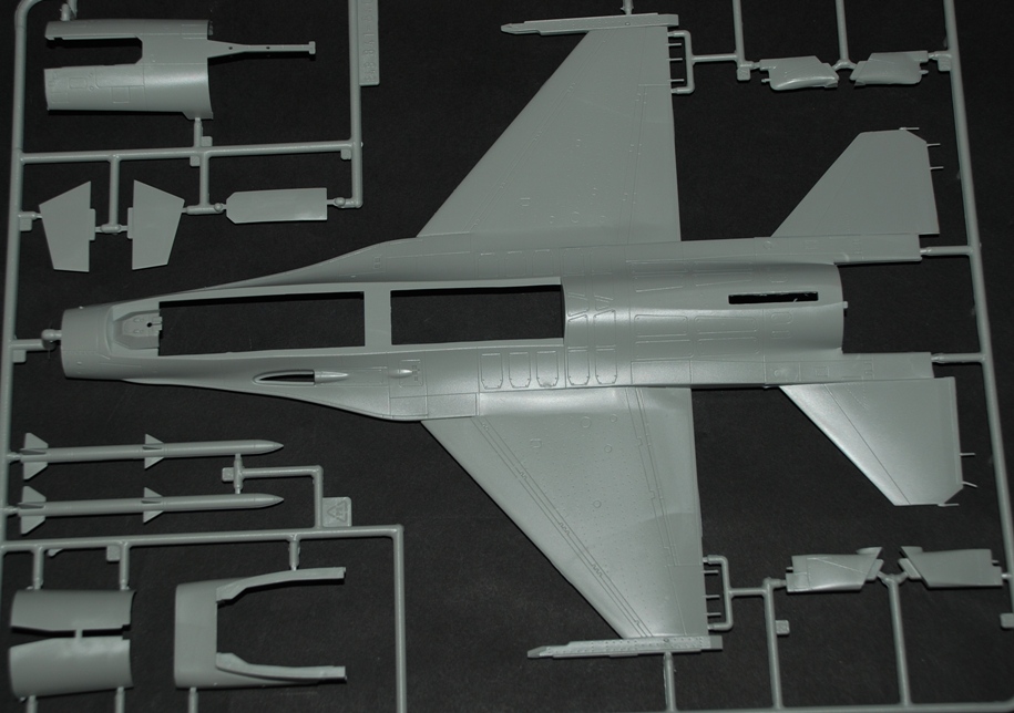 No real flash to speak of, so the tooling stands up well. I’ve built one of these Italeri F-16’s before and I remember enjoying the build. The grey plastic has a slight texture to it, but this can be easily sanded smooth with a pad.
