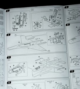 These are pretty easy to follow with the usual exploded stages approach. Helpful hints, like where to drill the holes to take the stores pylons etc, all make the whole build process very straightforward.