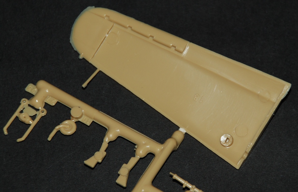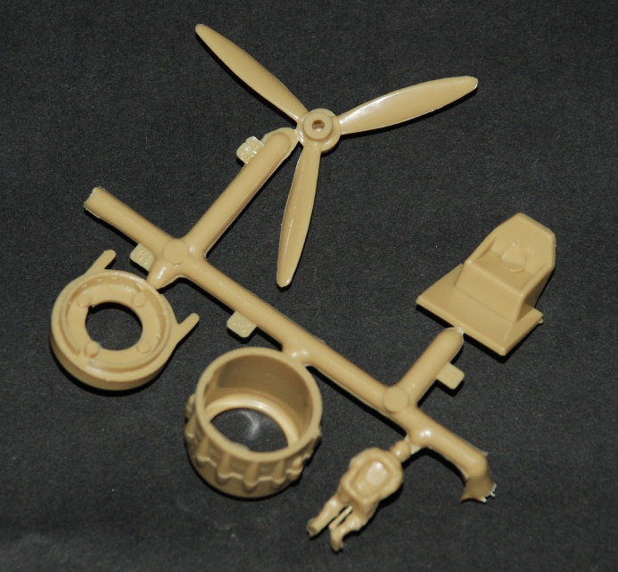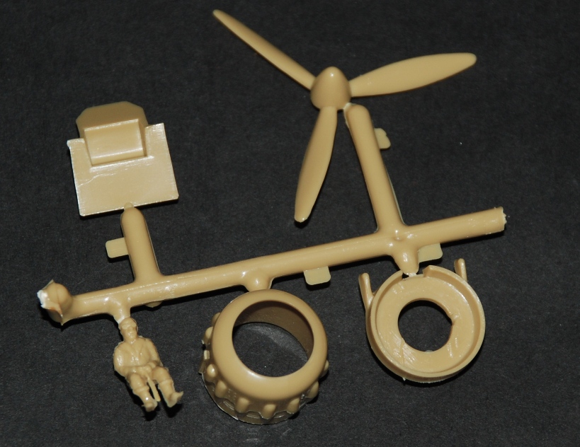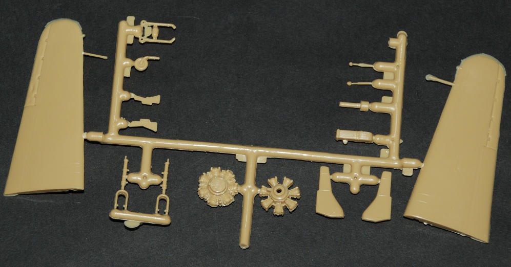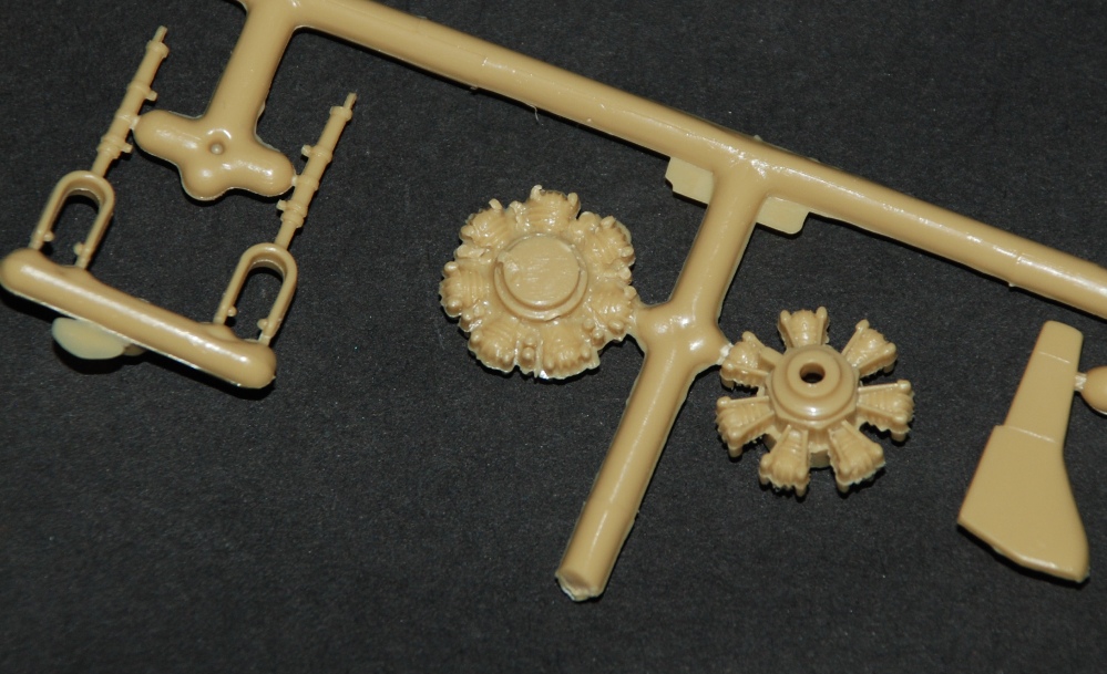 The light brown sprues are packaged well in the usual poly bag and no damage is apparent. Taking the main components first, they are clearly an old tooling with plenty of excess flash to clean away from almost all parts and the plastic feels quite hard and brittle-like.
