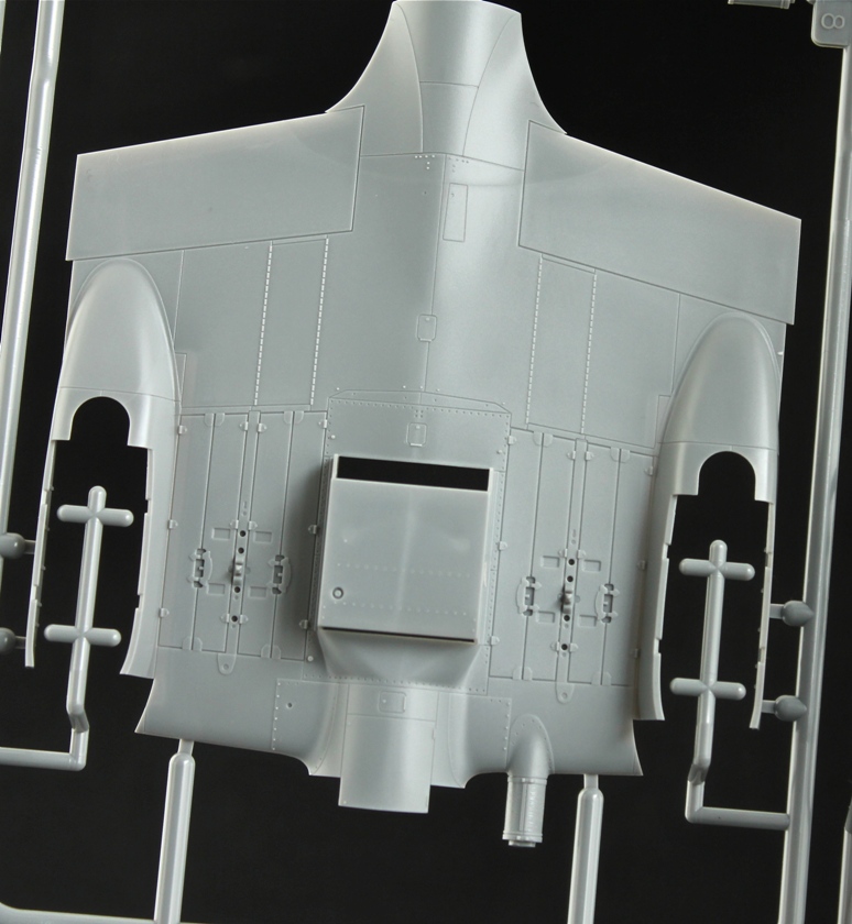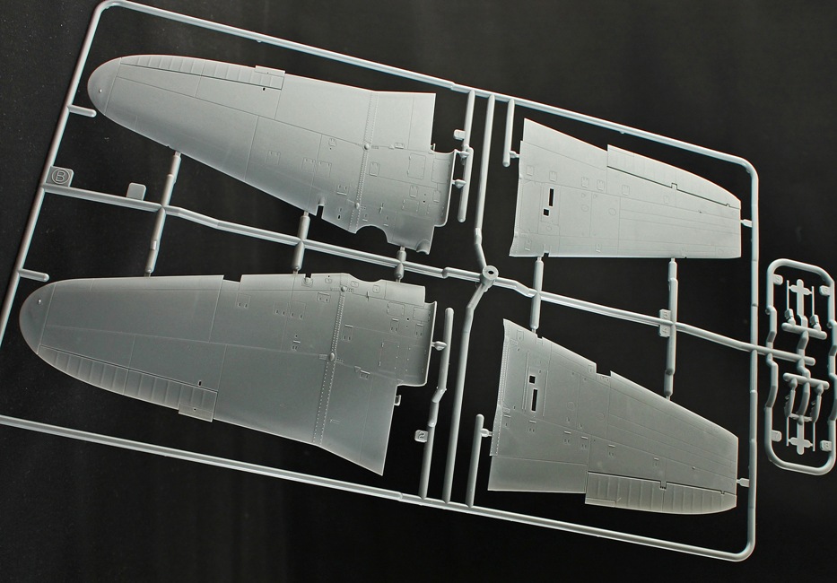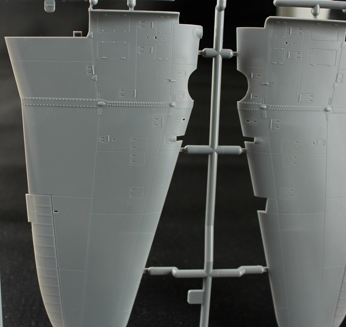 The first sprue (I pulled out) contains the wings. They have great detail on them including many access panels . These are shown in close up in the attached images.