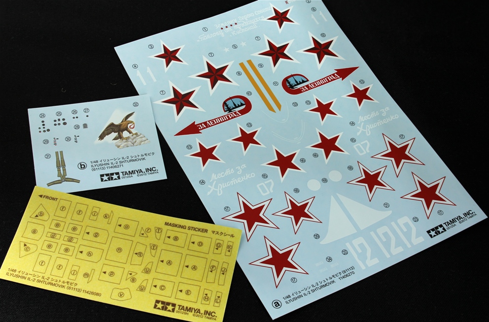 Thank goodness they supply masks for the canopy! These have to be cut out but even that cuts out two thirds of the work to paint these; they would be fiddly in the extreme. Lots of big red stars are included and plenty of Cyrillic if that is to your taste! You will have to make up your own seatbelts as these look the weakest part of the kit or I suppose they could be transferred to Tamiya tape? Not so good.