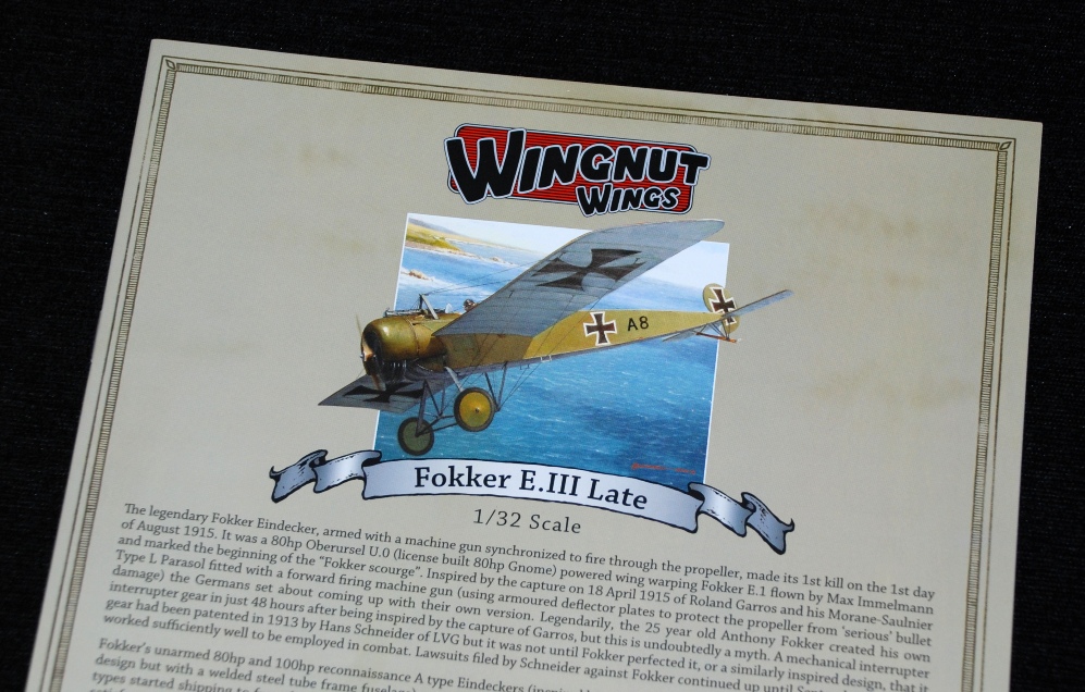 I would recommend that you look at the previous Wingnut Wings Here Now and Finished Now reviews available in your SMN – you’ll see what an amazing job WW is consistently doing with each new release and this one – the Fokker E.III (Late) Eindecker is easily up there with all that we have featured so far. It won’t have escaped your notice that the E.III is a monoplane albeit an early design and there’s less rigging too! Can’t be bad.