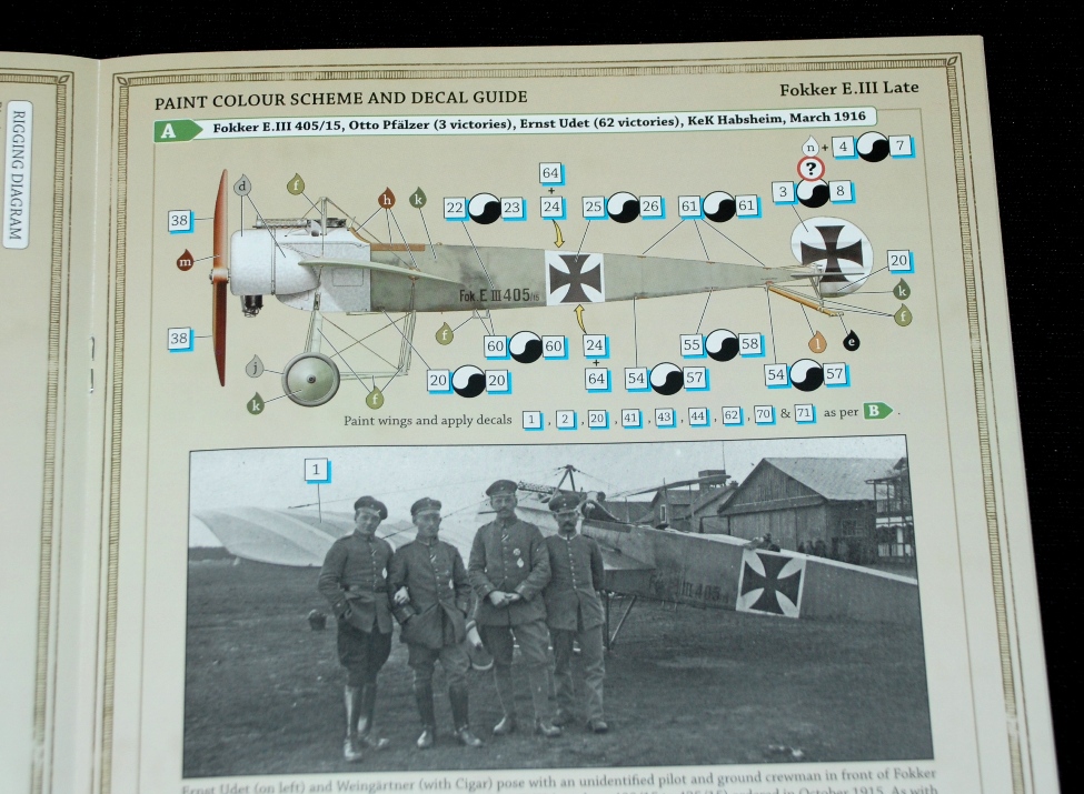 There are also several period images in black and white and these give a very clear steer as to weathering possibilities later in the project. Add to that the all colour walkaround images covering all aspects of the airframe and you have a five-star guide to completing your WW Eindecker E.III (Late).