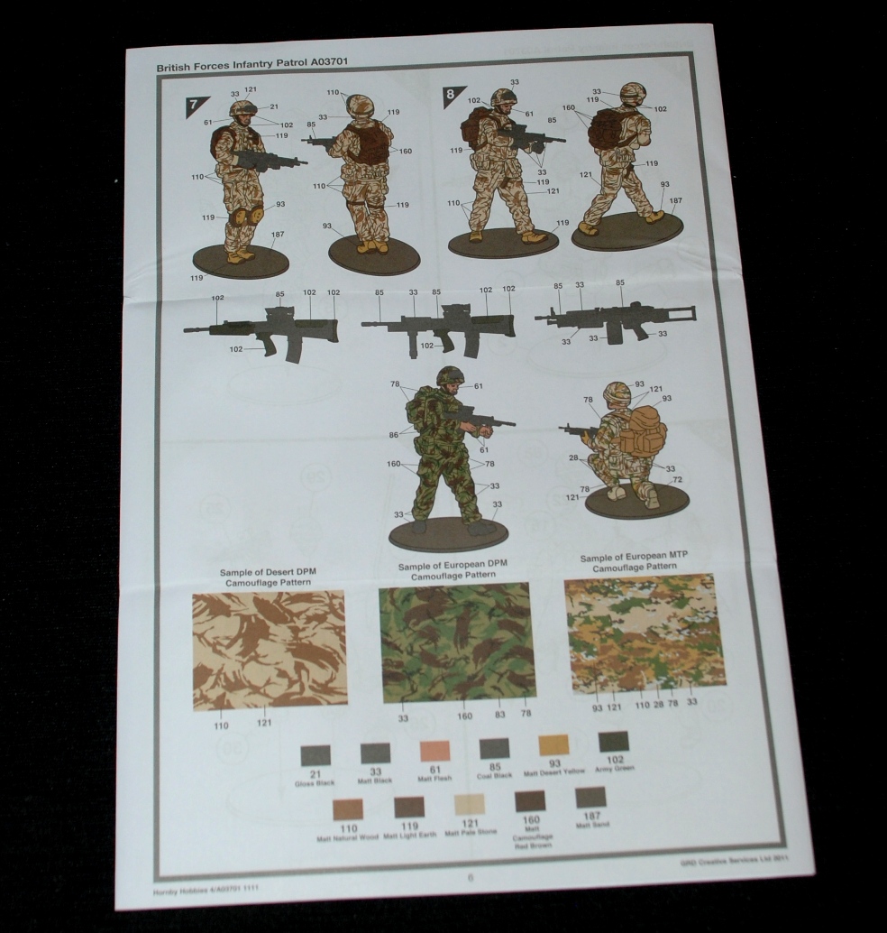 A colour painting guide is provided in the box and although Humbrol colour references are given, the colours are named and this will help you to match the colours from your own source to complete your model authentically. I like the inclusion of European and Desert camo pattern guides so don’t think that you are constrained to a Desert set up.