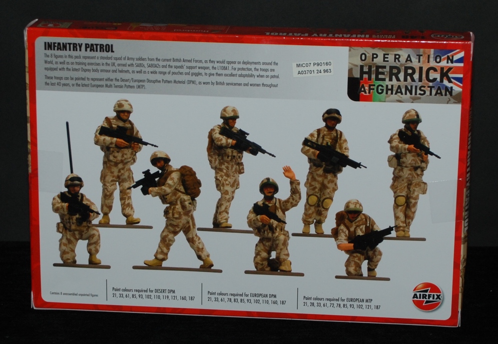 This release is part of the Airfix range of Operation Herrick Afghanistan kits and specifically this pack includes 8 figures.