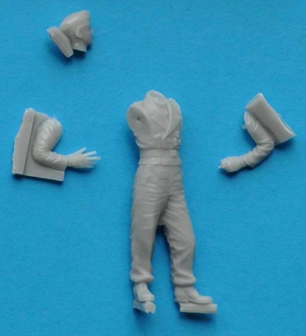 This is not a new kit, but one I picked up from a model show earlier this year. The model consists of a complete body, two arms and a head with the field cap. The pose shows the crewman pulling on his gloves.