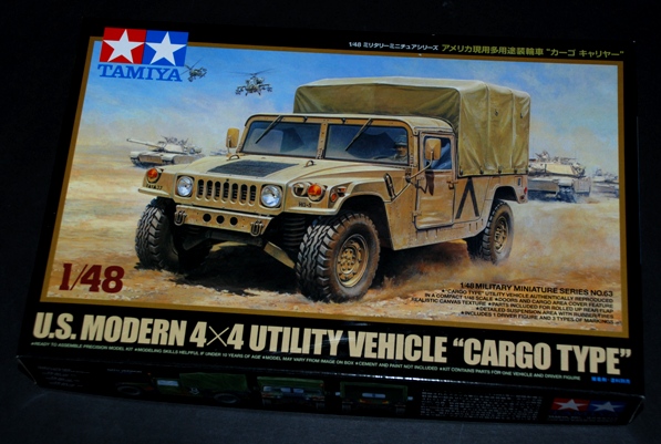 The box has good artwork of the vehicle and contains three sand colour sprues of parts, two small sprues of clear plastic for windows and lights etc, four rubber tyres and the bonnet as a separate item.