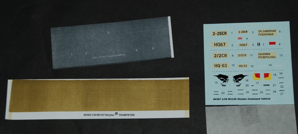 In the plastic wallet that contains the decals are the window masks and paper coloured and pre stamped for the straps used as tie downs.