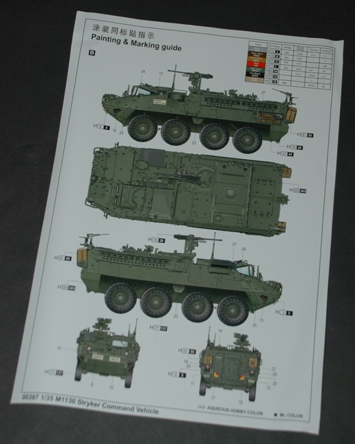 Also included is a single sheet for the painting and markings for two vehicles both in green with a colour guide which gives the reference numbers for Mr Hobby, Model Master, Vallejo, Tamiya and Humbrol paints.