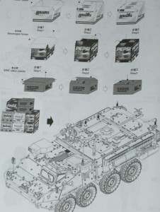 The kit comes on eleven sprues moulded in light grey plastic with 481 parts. The breakdown has the upper and lower hull as separate halves, clear parts, a small photo etch fret, as well as a set of rubber tyres. Nice touches included in the kit are the inclusion of foldable cartons of supplies, as well as paint masks.