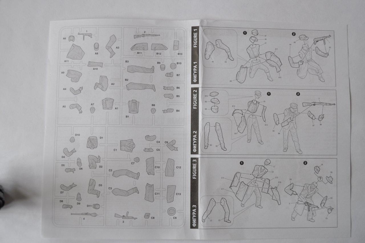 The instructions come on a single sheet of white paper printed in black, the sprue map is printed with its parts numbers showing placement for the following individual figures with each figure depicted in an exploded view.