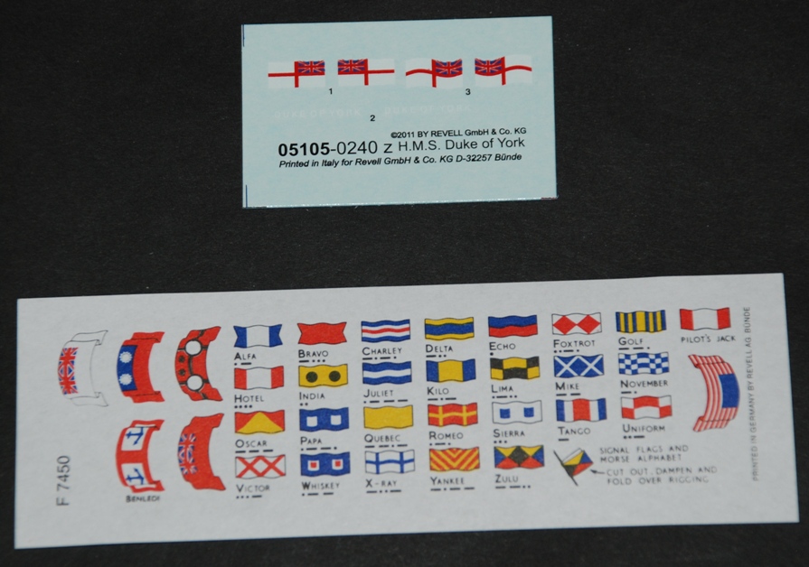 Revell include a small decal sheet with appropriate White Ensign flag, which look good to use.