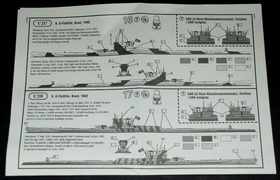 Revell include a decal sheet with appropriate markings for the U-Boats featured and some of the schemes will prove challenging, yet excellent if you pull them off.