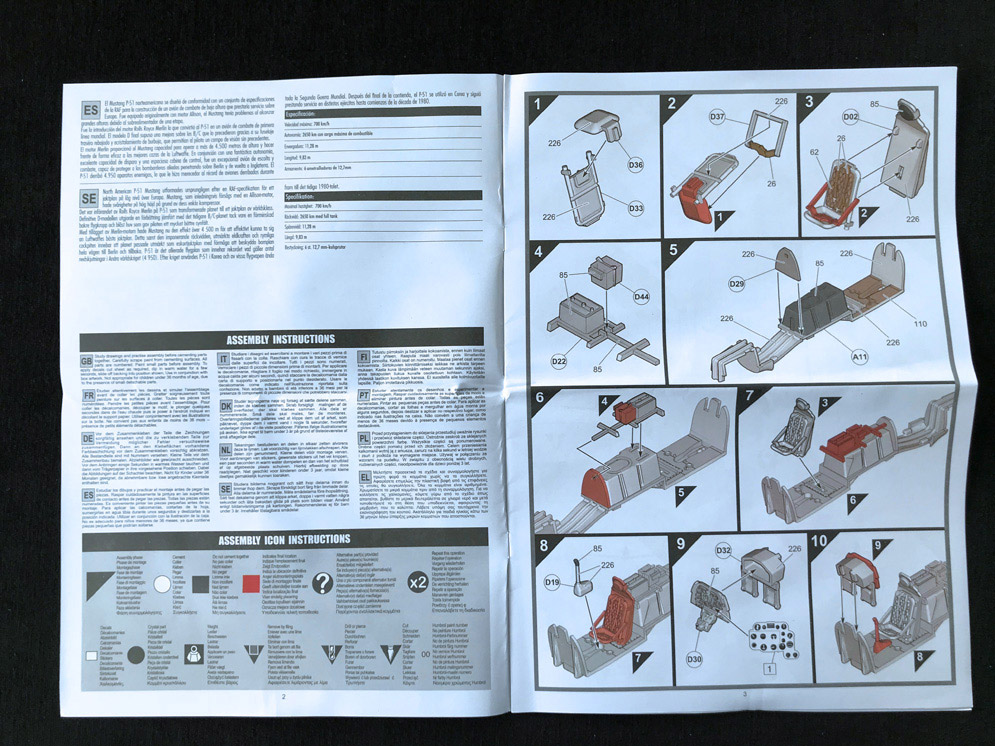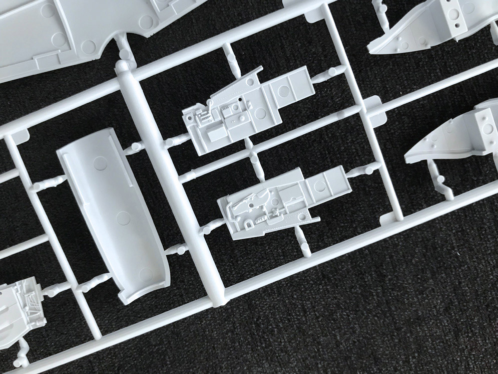 Cockpit – One of the real strengths in my view – everything is there to make a perfectly representative Mustang. The main instrument panel is well moulded with good raised detail as are the cockpit side walls. Watch the latter as there are a few mould ejector pin marks to remove before painting.