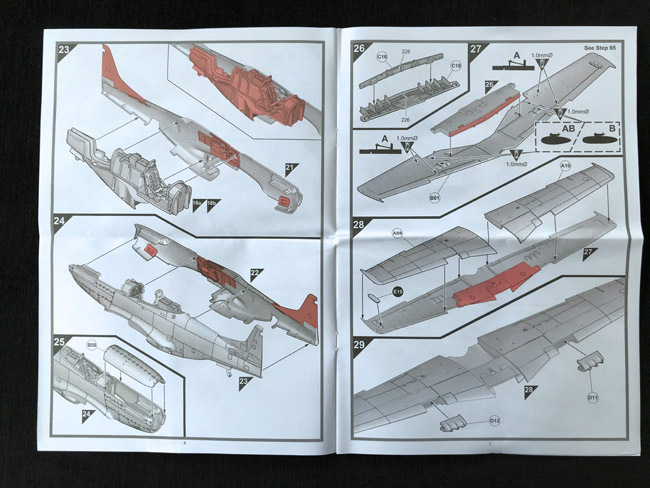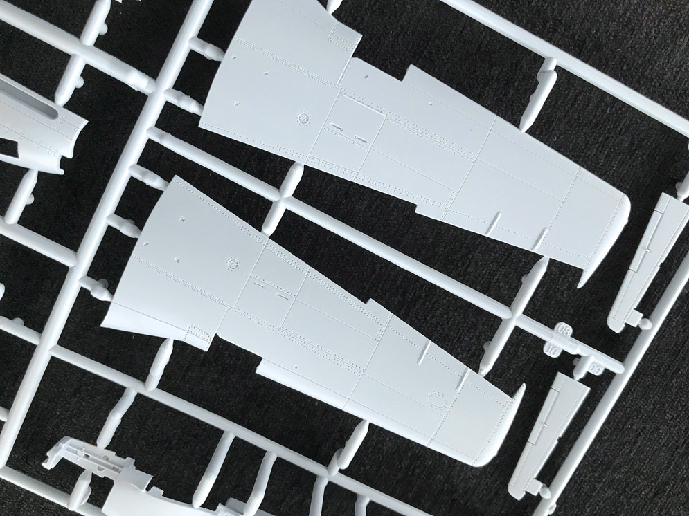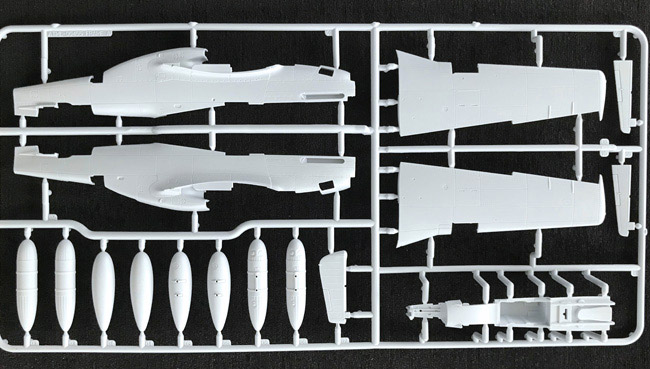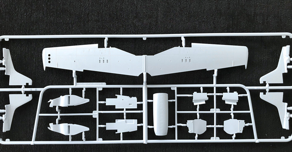 Parts breakdown is pretty conventional for a P-51 Mustang kit – separate upper main wing panels over the one-piece lower wing section.