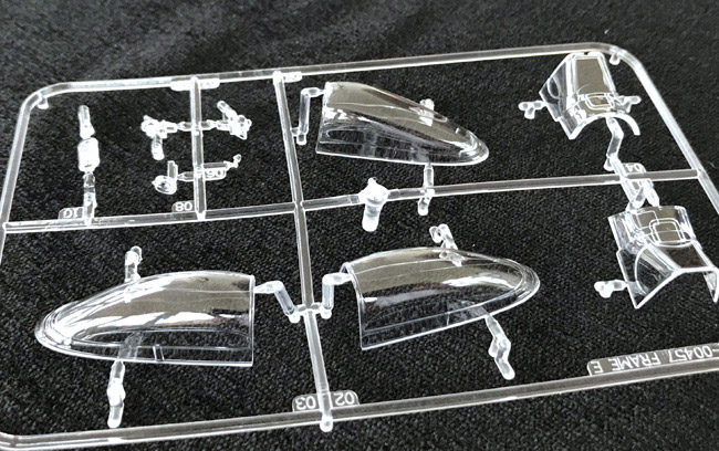The canopy is helpfully split so front windscreen and rear sections are separate allowing you to pose your canopy open or closed. Crystal clear, blemish-free and well moulded without any distortion. I like the fact that different styles of canopy are included depending on which P-51D you are building. Another nice tooling advantage is that there is no canopy seam line to eliminate – happy days!