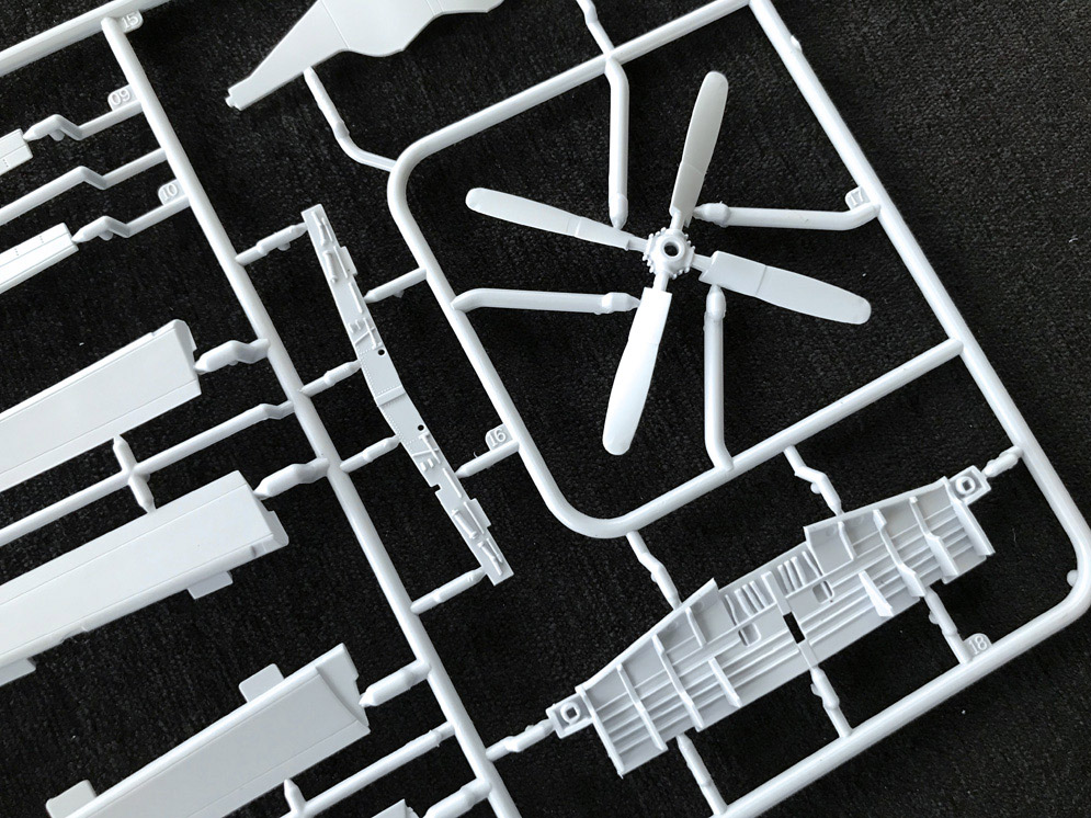 Propeller – the four-bladed Hamilton Standard prop is well formed as are the exhaust stacks, although these have some mould sink marks to take care of if they bother you.