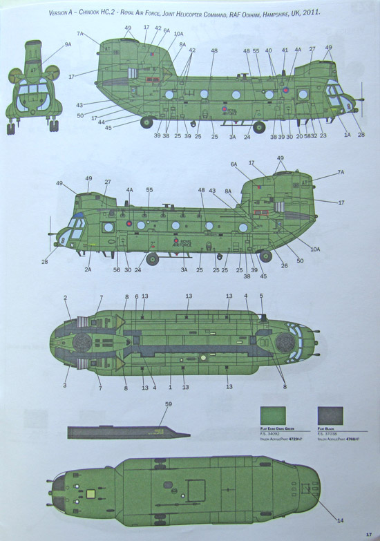The painting and decal guides are full page for each option in colour, with paint references showing FS codes and Italeri’s own range of acrylics.