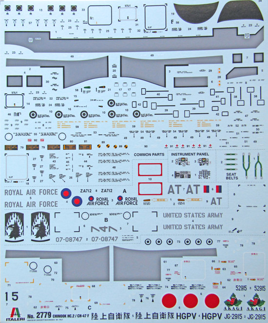 A single decal sheet is supplied with plenty of stencils and markings applicable to each option. Colour and register seem ok at first glance. There are also decals for walkways, instrument console and seatbelts if you so choose.
