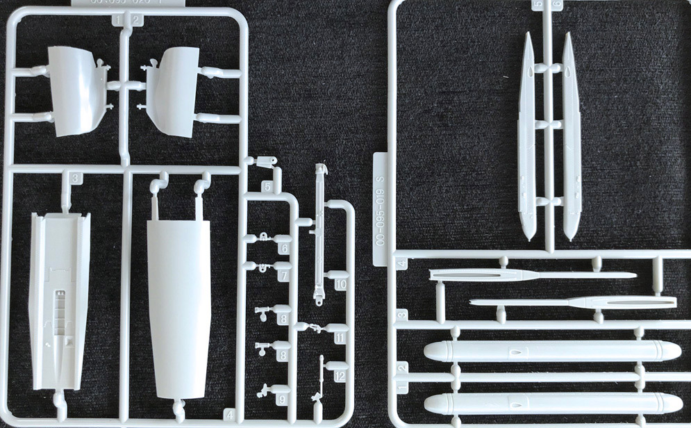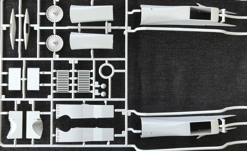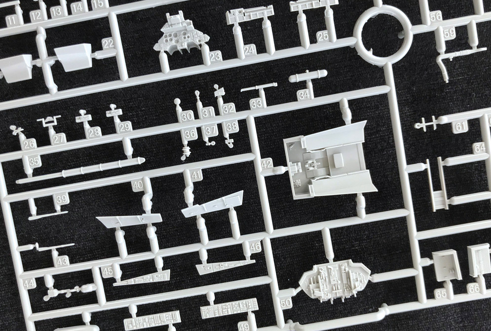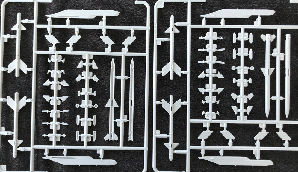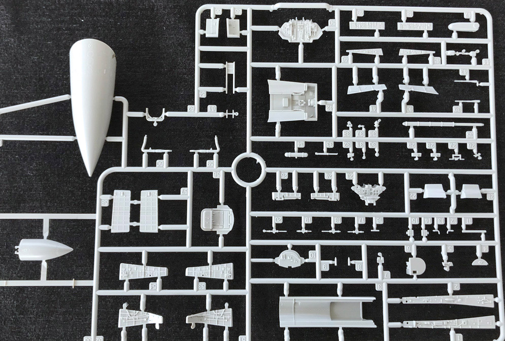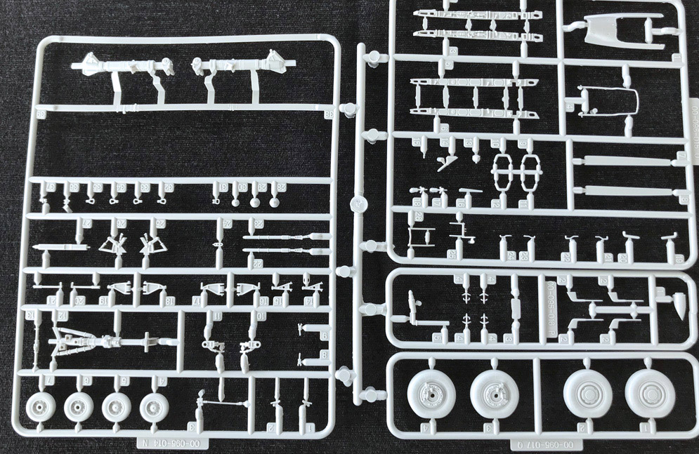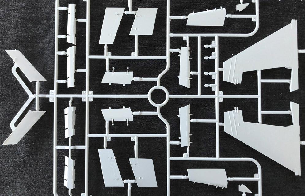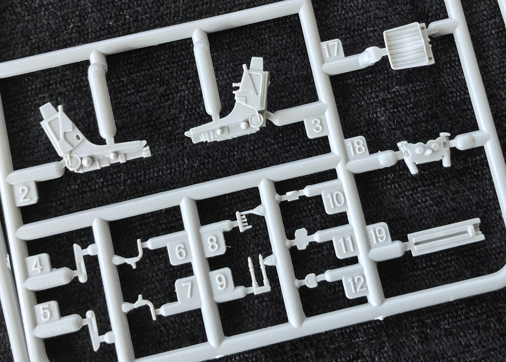The grey sprues are packaged well and no damage is apparent. Taking the main components first, they are well tooled, recessed panel line detail has a quality feel and is refined. No distortion on the main grey parts is apparent and the initial impression is one of detail parts that will go to make up a highly detailed representative model in 1:48 scale.
