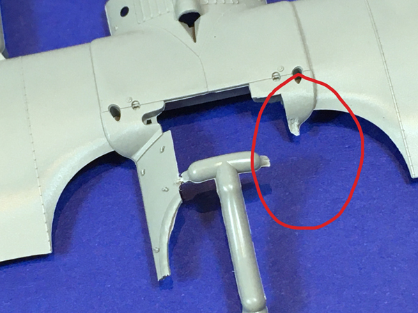 On the plus side, the trailing edges of the wing are for the most part very thin and well moulded. The Fokker Dr.1 had a length of wire along the trailing edges of each wing. When the wing’s fabric covering was doped it shrank, pulling on the wire, leading to a scalloped effect along the trailing edge. This has been very well reproduced in the kit.