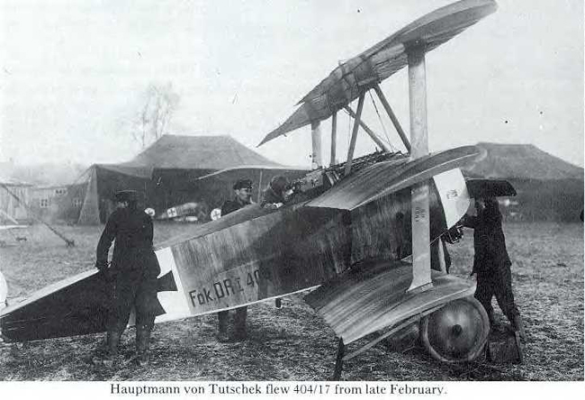 · A Dr.1 flown by Herman Goering with the rear of the fuselage and horizontal tail surfaces overpainted in white.