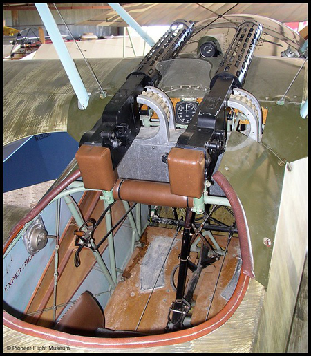 · Paired aileron control cables crossing each other inside the cockpit in front of the pilot. These emerged from the holes in the cockpit coaming and ran into the lower surface of the upper wing.