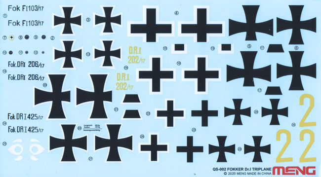 This feature can be seen on a photo of a Dr.1 that I found on the internet. This may not have been common to all Dr.1s, and the wheel covers were often over painted in squadron colours. However, the depiction of a solid colour in Meng’s instructions is perhaps worth checking. Out come the reference books again!