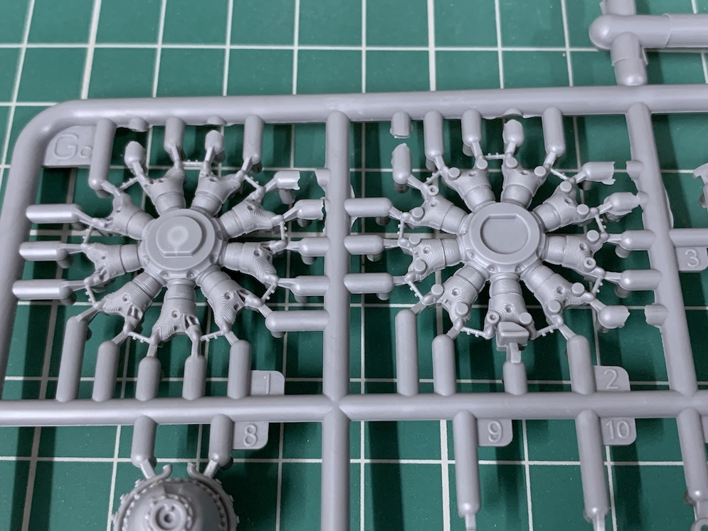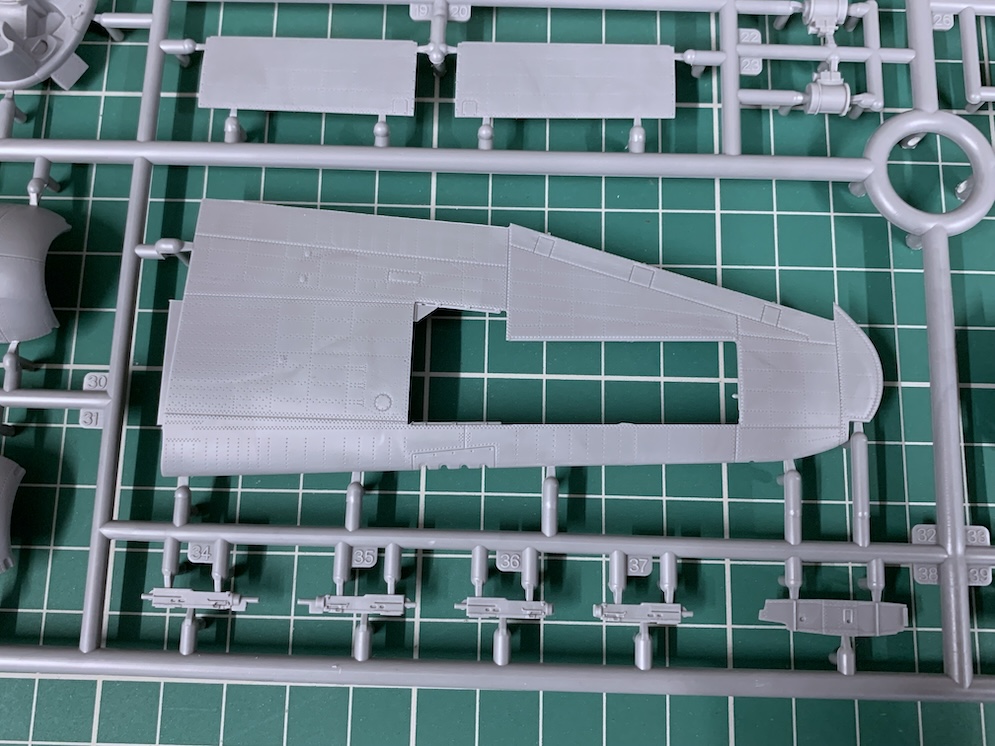 The detail on the sprues are something else, rarely do you see the level of detail on the cockpit parts included in an injection-molded kit. Included in the advanced kit is extra sprues which cover full open ’50 cal gun bays with ammo troughs with some nicely detailed ’50 belts!