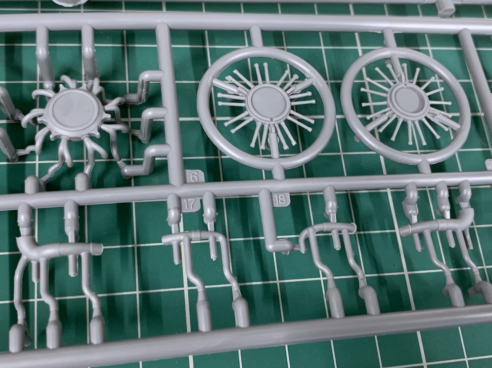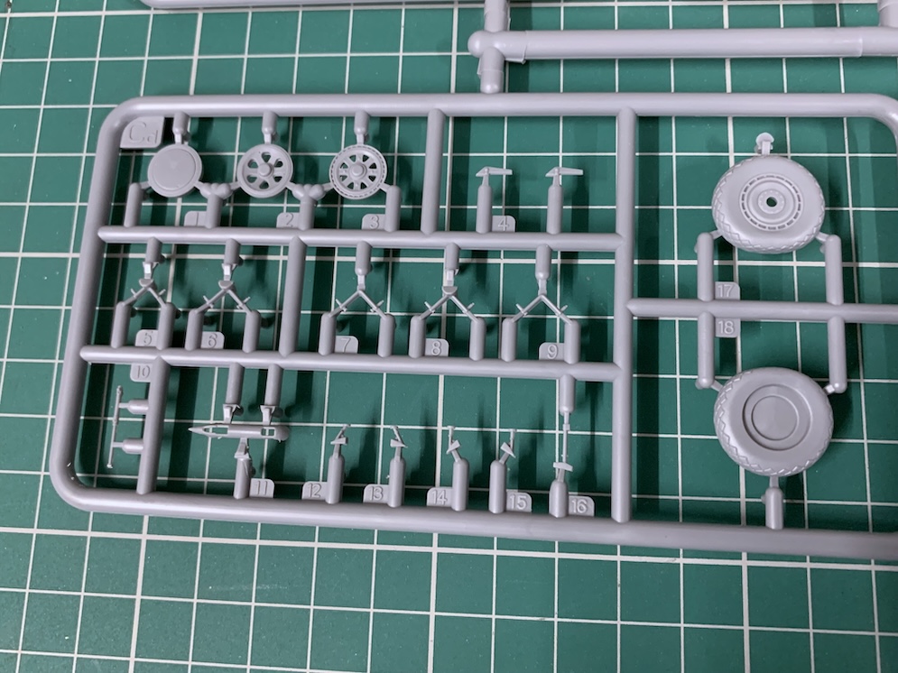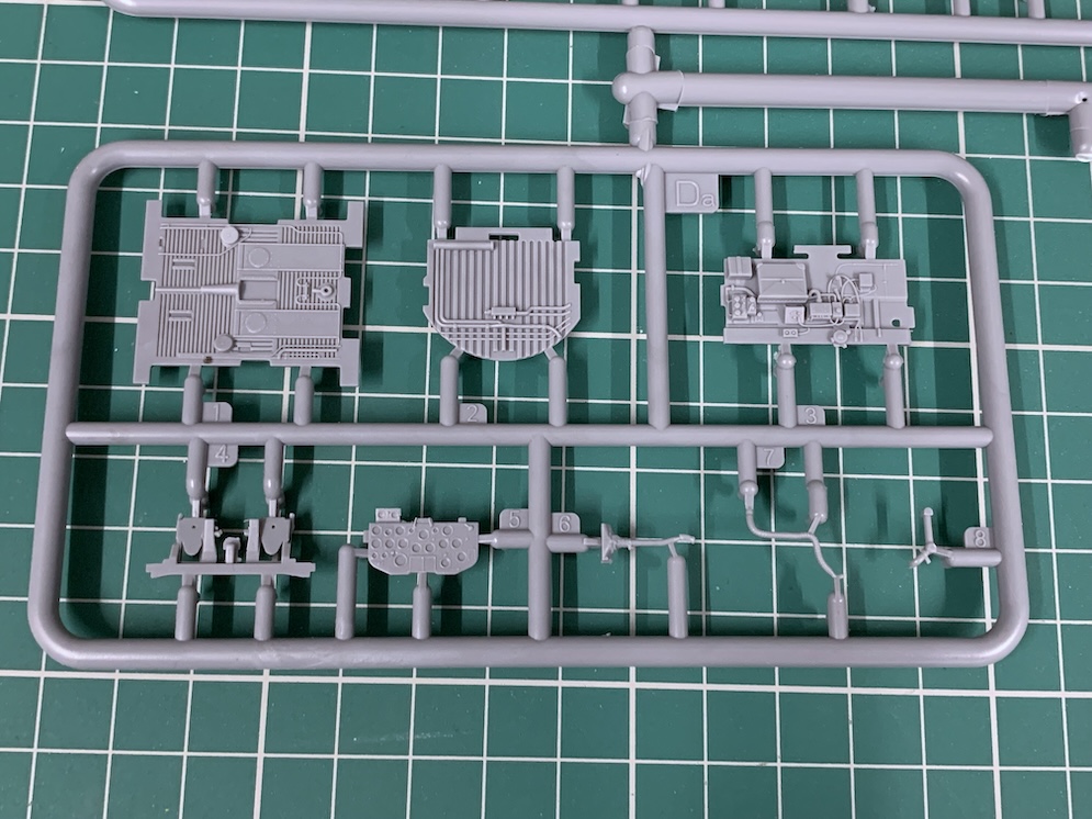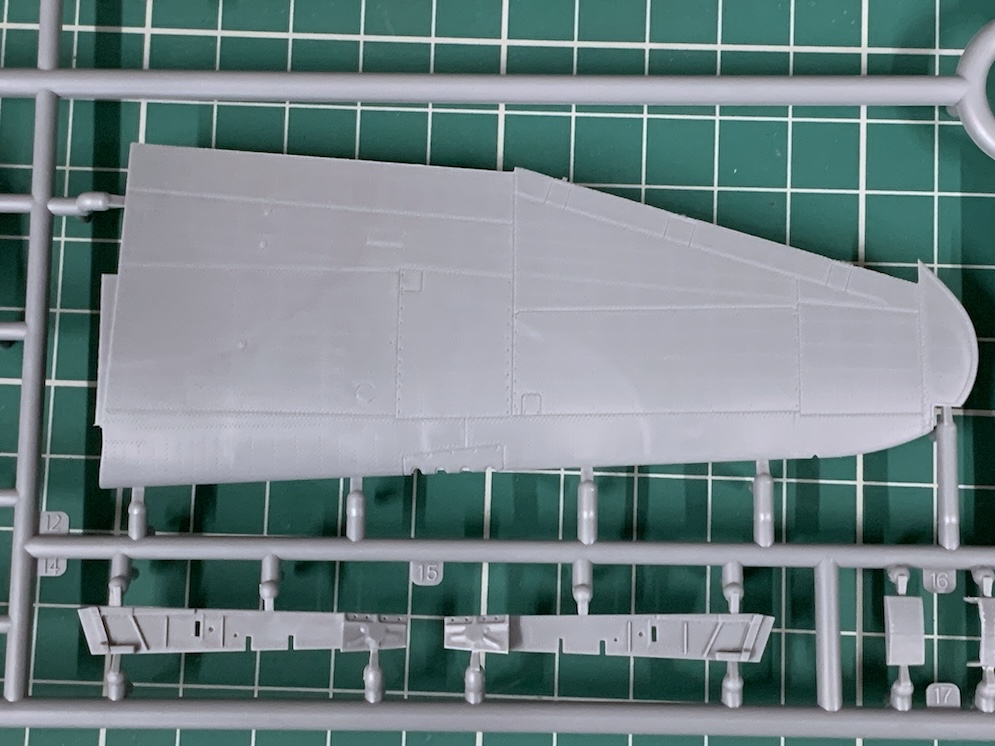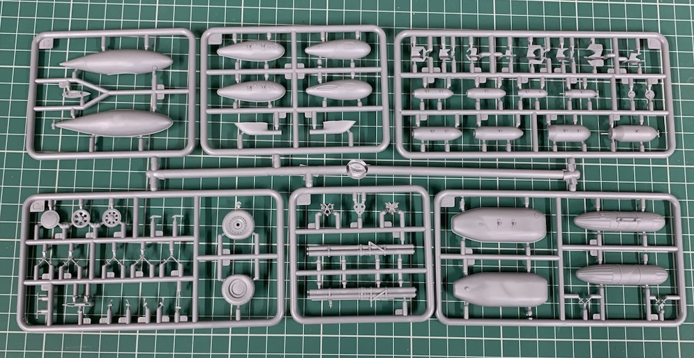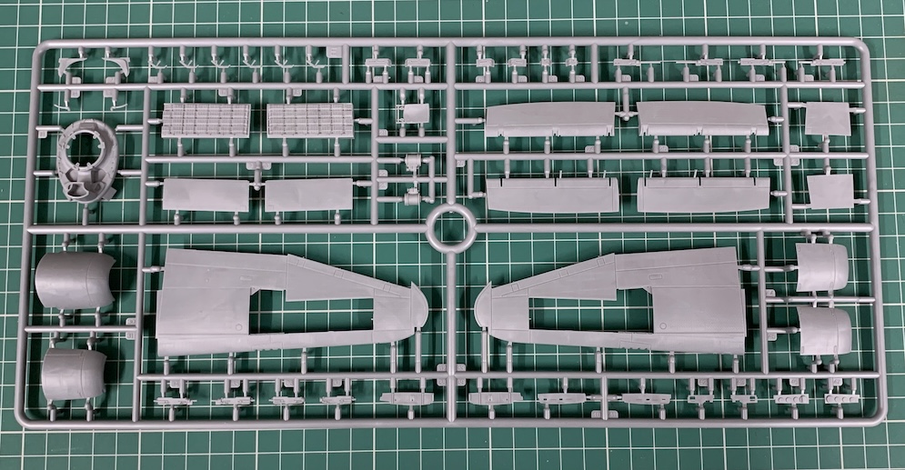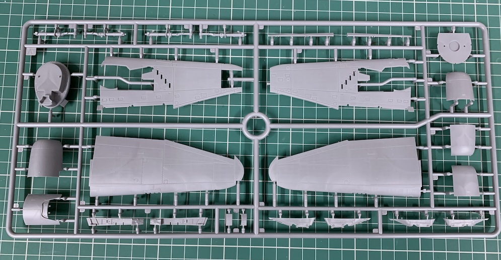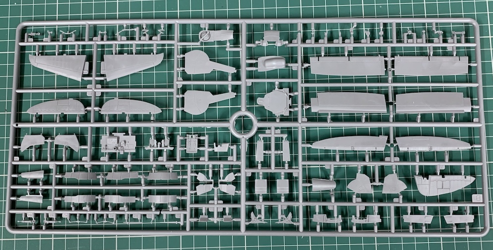 Upon opening the box for the first time you are greeted by a very neat package including 8 grey plastic sprues and a clear sprue for the canopy, gun sight etc.
