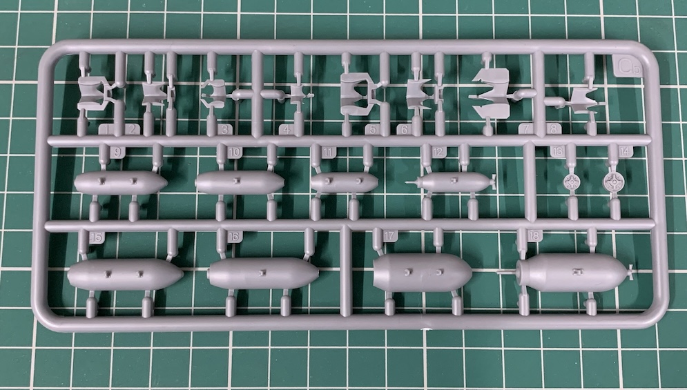 Also included is a medium sized etched fret, which has seatbelts, wiring harnesses, bomb fins and various other parts.