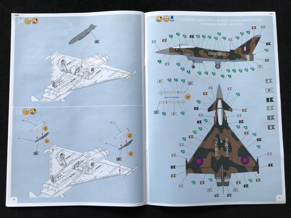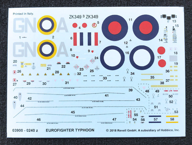 This release of the single-seater Eurofighter Typhoon is welcome and comes as part of Revell’s British Legends 1918-2018 series of releases for this year. This kit also features the excellent Dark Earth/Dark Green camo pattern and large RAF roundels and code letters on the fuselage side (check out the above photo).