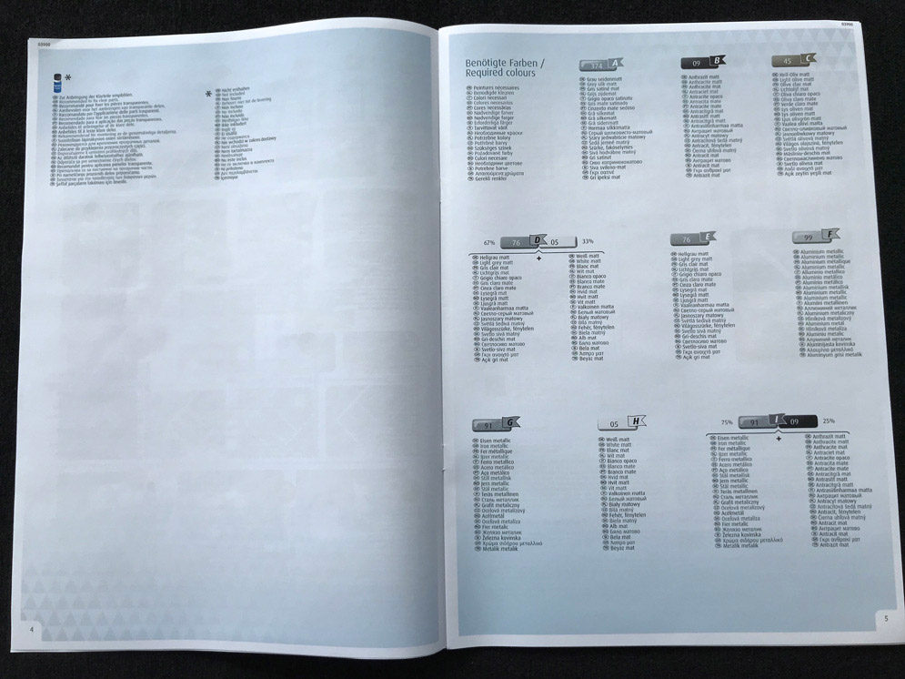The Revell instructions look rather different this time – colour would you believe! Location of parts is clear but colour paint coding is for Revell paints only. You’ll have to match your own choice of paints if you go elsewhere for your choice of colour. The build sequence is pretty standard and logical but many modellers will part company with the stated order to suit their experience.
