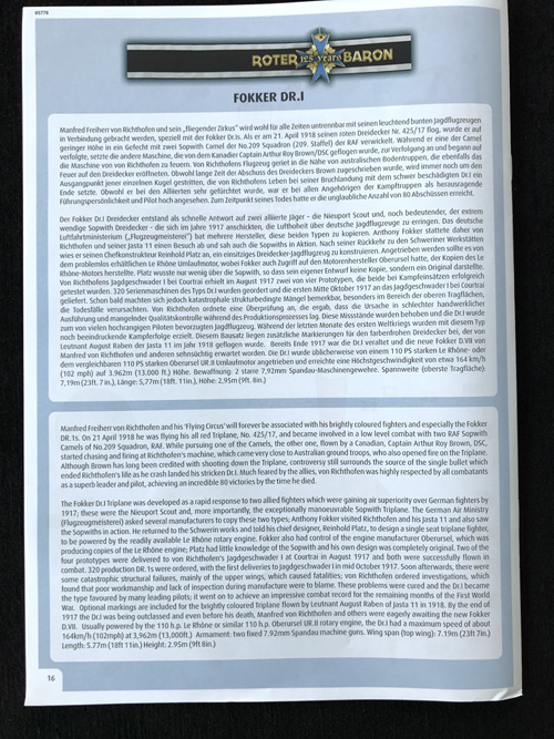 Set includes: Kit; decals; instructions; paints; Richthofen DR.I painting print.