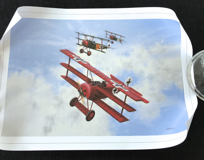 As mentioned, you do get a nice rolled up painting/print of Richthofen peeling away to make his attack.