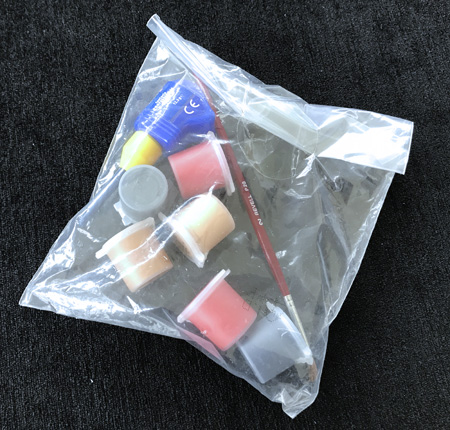 A basic set of paints and glue is included.