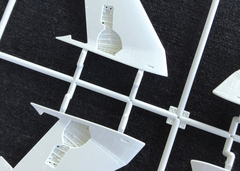 Raised detail on the cockpit panels is provided. The other internal details are well detailed too as you can see from the attached photos and will add a fair bit to the eventual look. The cockpit tub is especially well done and there is useful detail on the rear decking.