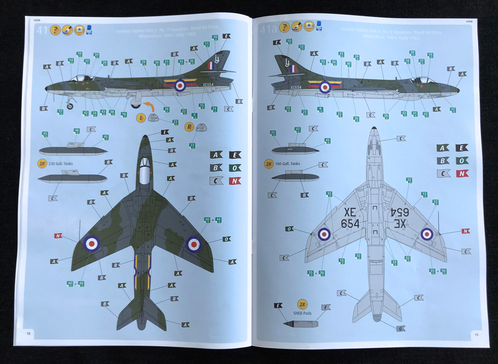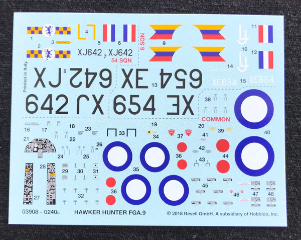 This re-release of the single-seat Hawker Hunter FGA.Mk.9 is welcome and comes as part of Revell’s British Legends 1918-2018 series of releases for this year. This kit also features two new squadron schemes from the previous incarnation back in 2008 (Source: Scale-mates).