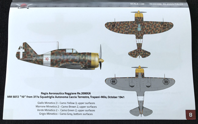The small decal sheet does offer 3 Italian aircraft, yet you are provided with sumptuous profiles and artwork for the remaining countries that flew the Re 2000 Falco: Sweden and Hungary. One other very attractive Italian machine is also shown and I initially thought that it would have been excellent to have all these aircraft featured on the instruction sheet provided in the kit. However… these latter aircraft are for Re 2000’s that has the clear extended rear canopy section and this isn’t provided in this release of the kit.