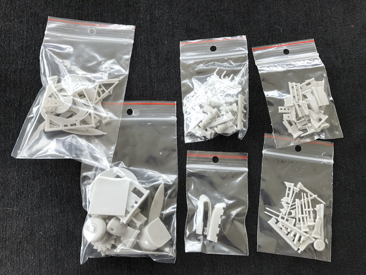 Everything is very well presented within the sturdy cardboard box. The resin parts are supplied in batches in small plastic bags and a really nice touch is the clear canopy arriving in a small hard white plastic jar to protect it. No damage at all on the clear or other resin parts, some of which are tiny and very delicate. Speaking of the clear parts, these are moulded well and with a little polish, they should come up nicely.