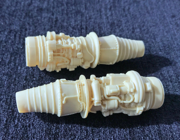 Engine bays and engines – these are impressive because you get two fully detailed resin engines that can be included. Metal retaining arms are supplied so the idea is you can pose the bays with panels open or closed.