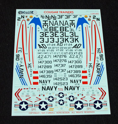 These decals are released soon after the release of the Kitty Hawk TF-9J Cougar kit in 1:48 scale and we have the in-box review of the Kitty Hawk TF-9J Cougar here.