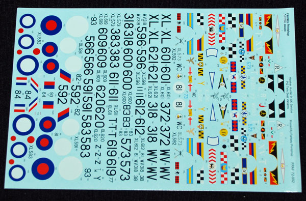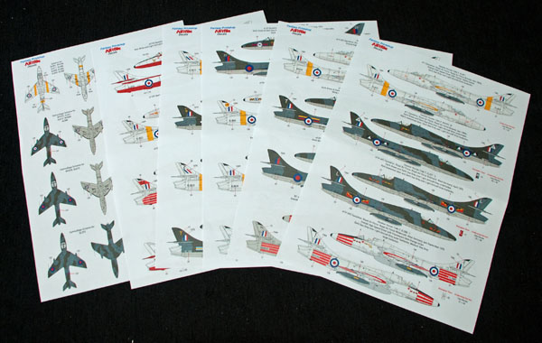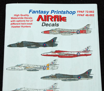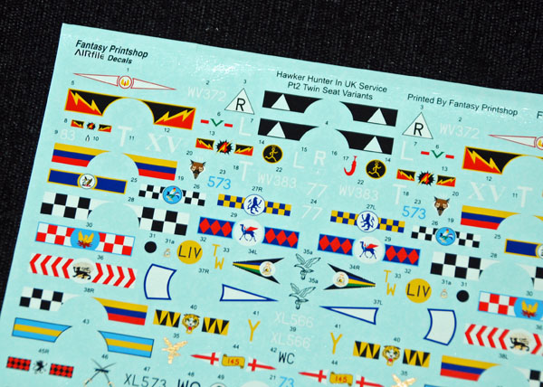 Back to this package, for that’s exactly what you get here – decals for no less than 27 different Hawker Hunters in 1:72 and all are twin-seaters. There is a complimentary set (also reviewed in Here Now) covering single-seat Hunters. Quality is very good as anyone who has used decals from Fantasy Printshop before will know.