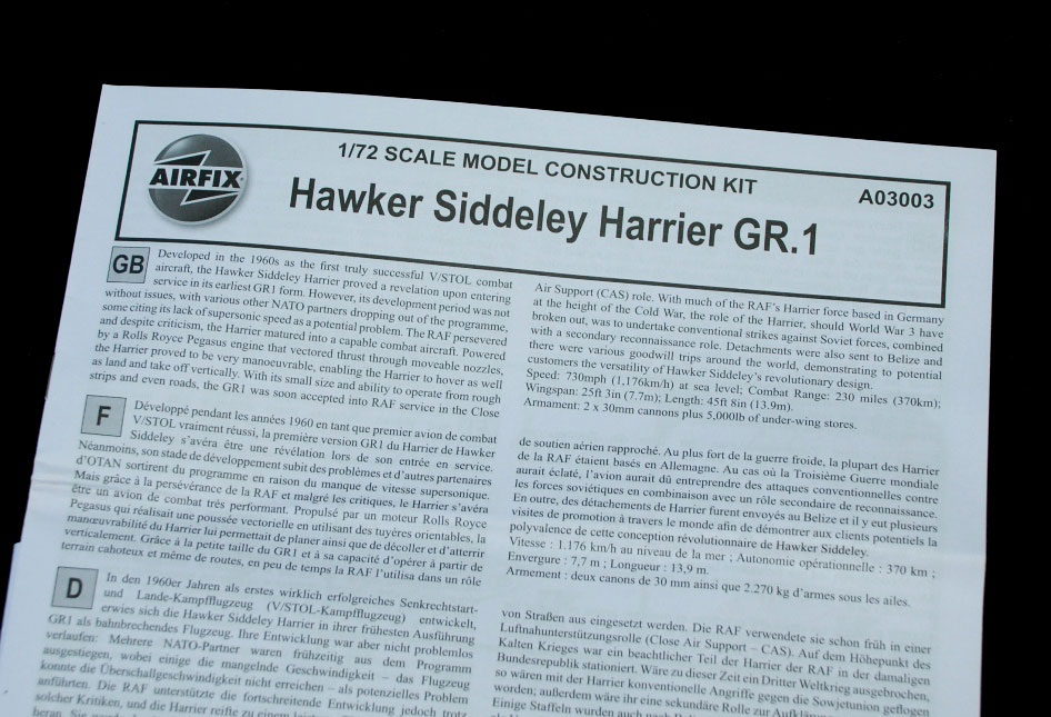 First impressions are good as this kit is an all-new tool and that is good news at any time. This model enhances further the growing number of Harrier versions available in 1:72 scale that have been re-tooled from earlier models.